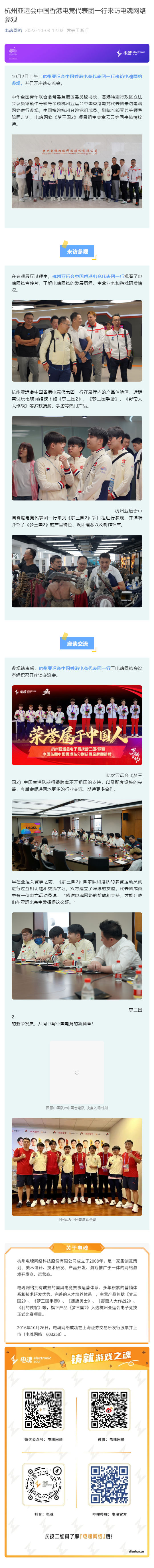 杭州亞運會中國香港電競代表團一行來訪電魂網絡參觀