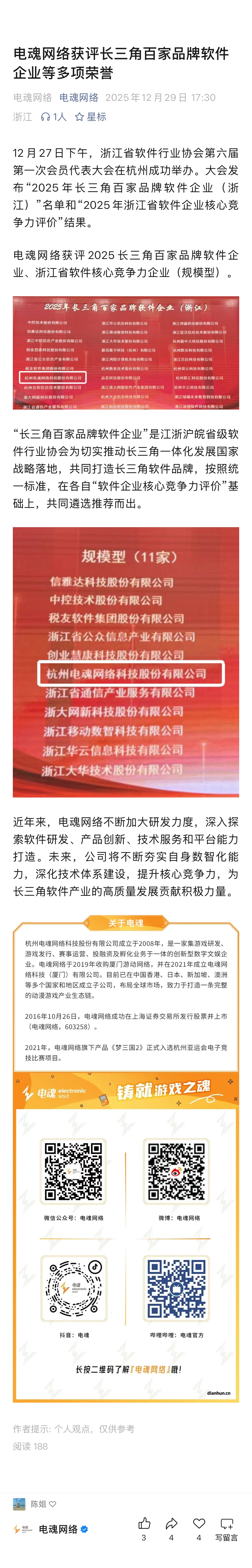 電魂網(wǎng)絡(luò)獲評長三角百家品牌軟件企業(yè)等多項榮譽