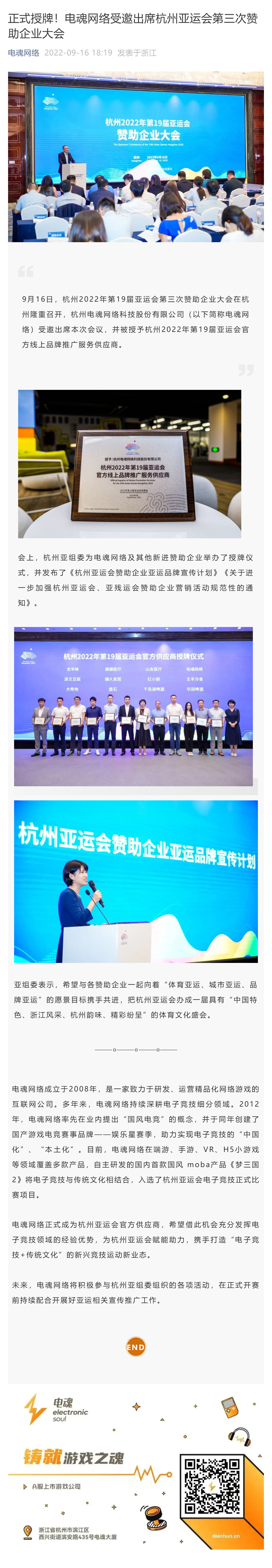 正式授牌!電魂網(wǎng)絡(luò)受邀出席杭州亞運會第三次贊助企業(yè)大會